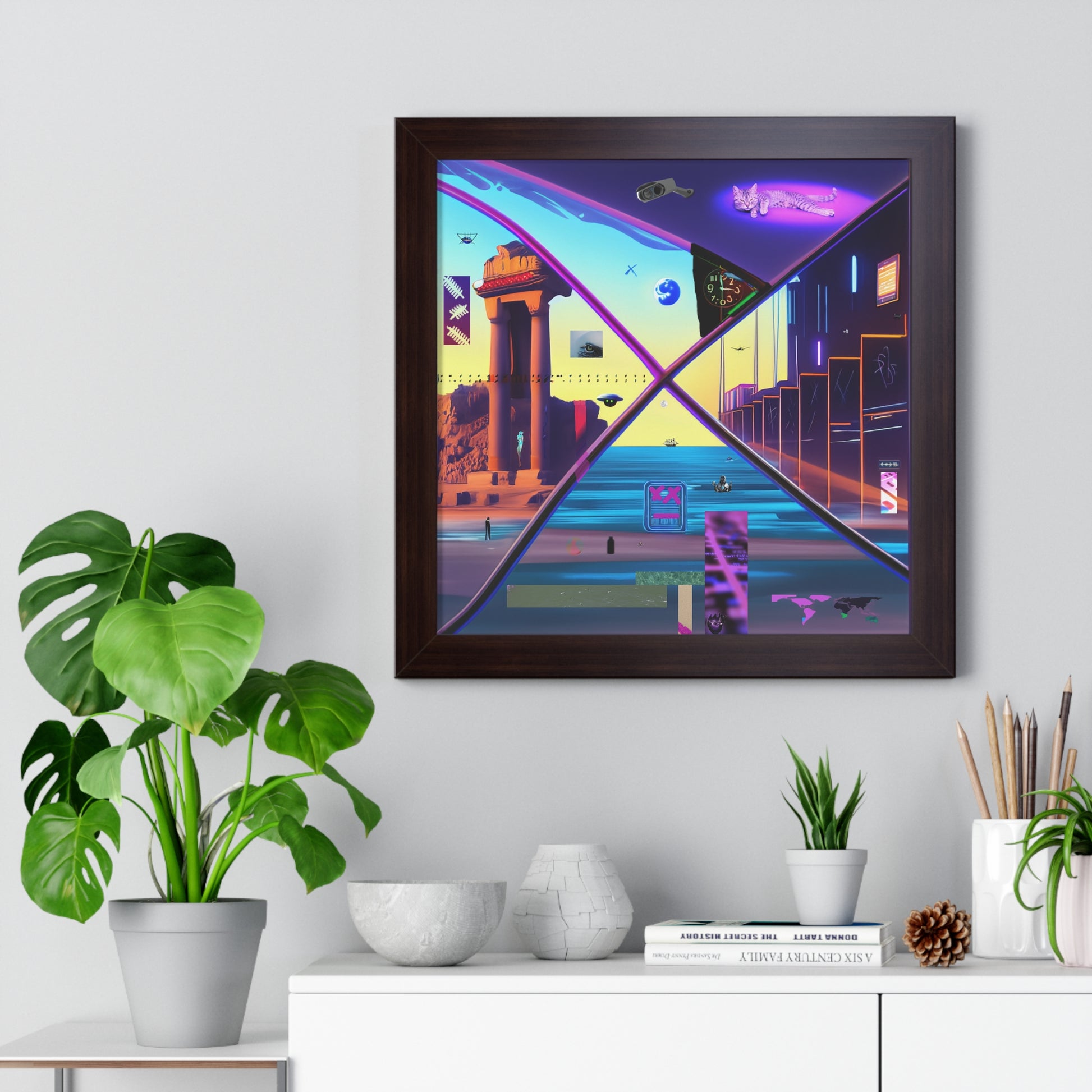- Premium Print Quality: Crafted on LexJet Premium 200 gsm paper, our Dimensional Windows capture every nuance of the surrealist vaporwave aesthetic with rich, vivid colors and sharp details.